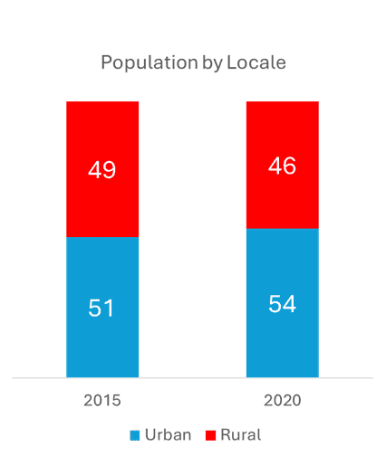 Based on the 2020 Census of Population and Housing, 58.93 million Filipinos — or 54% of the total population — now live in urban barangays[1]. This marks a 2.8% point increase from the 2015 Census of Population and Housing, where the urban population was recorded at 51.2%.